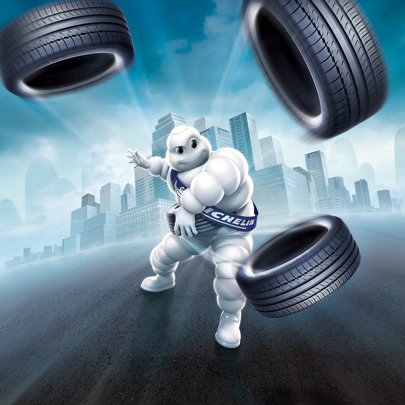 Michelin advertising illustration. Taking an existing character and re-illustrating in a fictional environment.