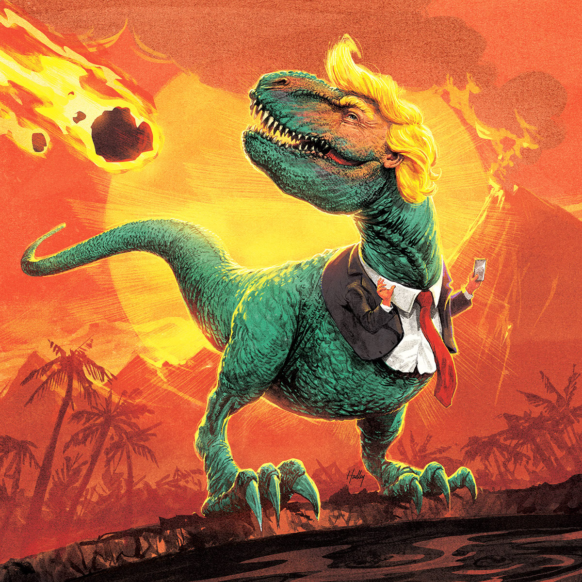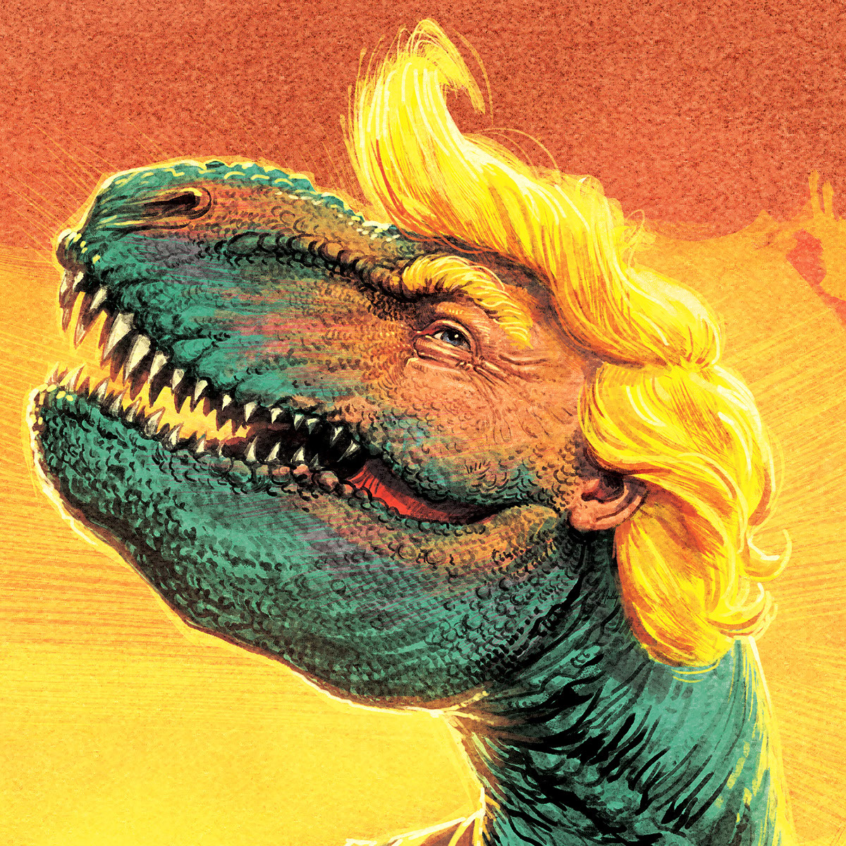 Trumpasaur editorial illustration featuring Donald Trump as a species becoming extinct.